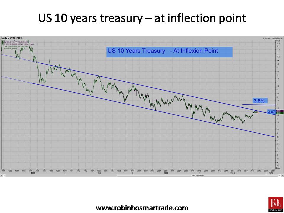 2) US 10-year treasury yield is testing the upper trend line of the channel and could be on the verge of a break out.